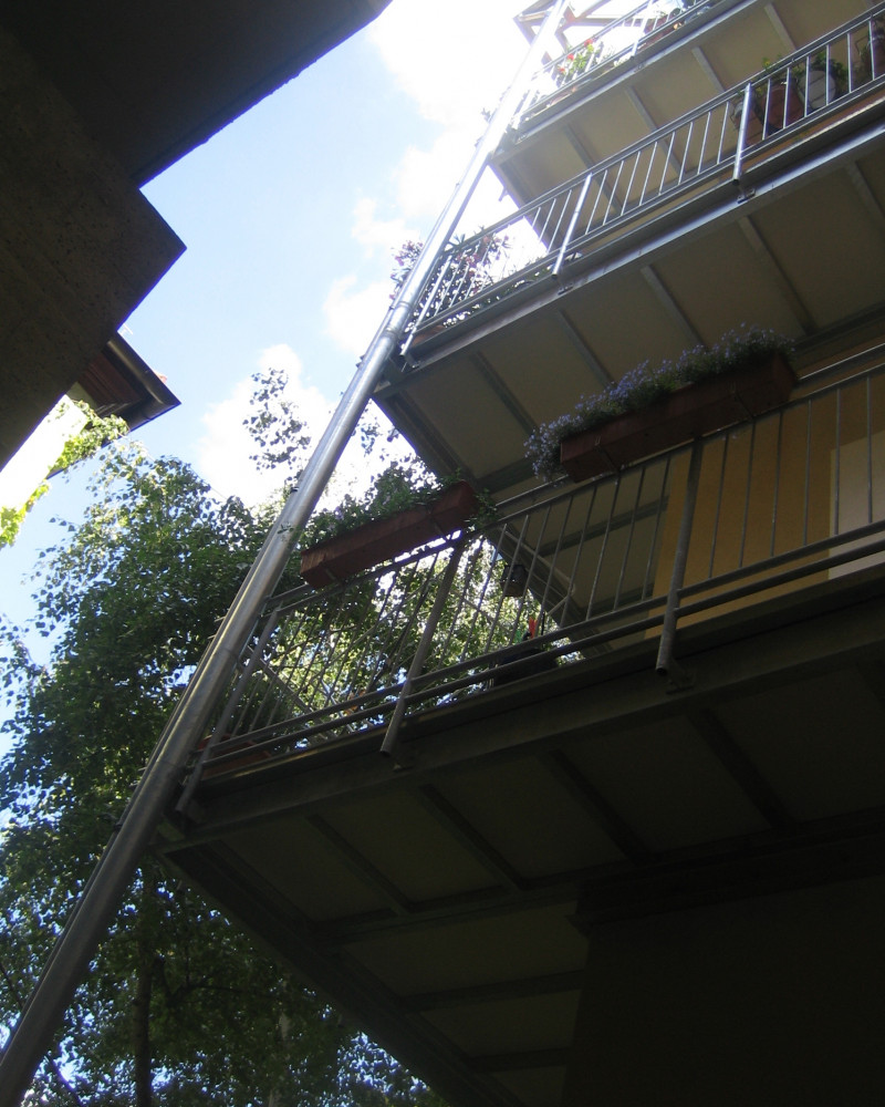 Balkonanbau mit vier Etagen an Mehrfamilienhaus